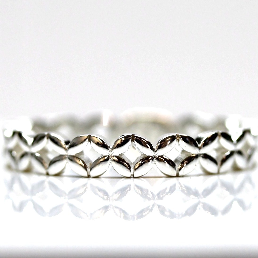 The small feminine flower band is ideal as a wedding ring or you can have multiple rings to use as a stacker.